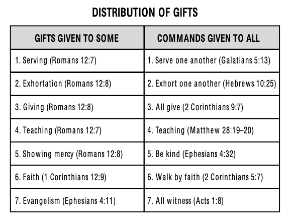 In studying this subject one time I noted that certain spiritual gifts given only to some believers have similar commands that are given to all believers.