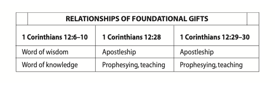 The gift of wisdom was important in that it stands first in this list of gifts. Paul explains the gift of wisdom in greater detail in 1 Corinthians 2:6–12 where it is seen to be divinely imparted revelation that Paul could communicate to the believers. Because this gift involved receiving direct revelation, it was a characteristic gift of the apostles who received direct revelation from God.[26] The gift of wisdom thus “is the whole system of revealed truth. One with the gift of wisdom had the capacity to receive this revealed truth from God and present it to the people of God.”[27] Because this gift is related to receiving and transmitting direct revelation from God the gift has ceased with the completion of the canon of Scripture.